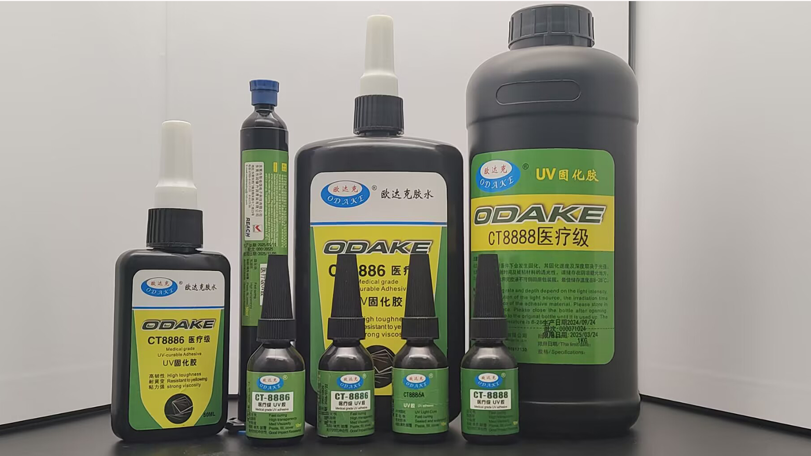 这些产品均为 单组分、快速固化、无溶剂 的专业医疗级UV胶,在医疗行业获得广泛应用。