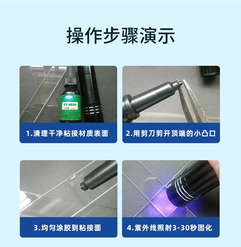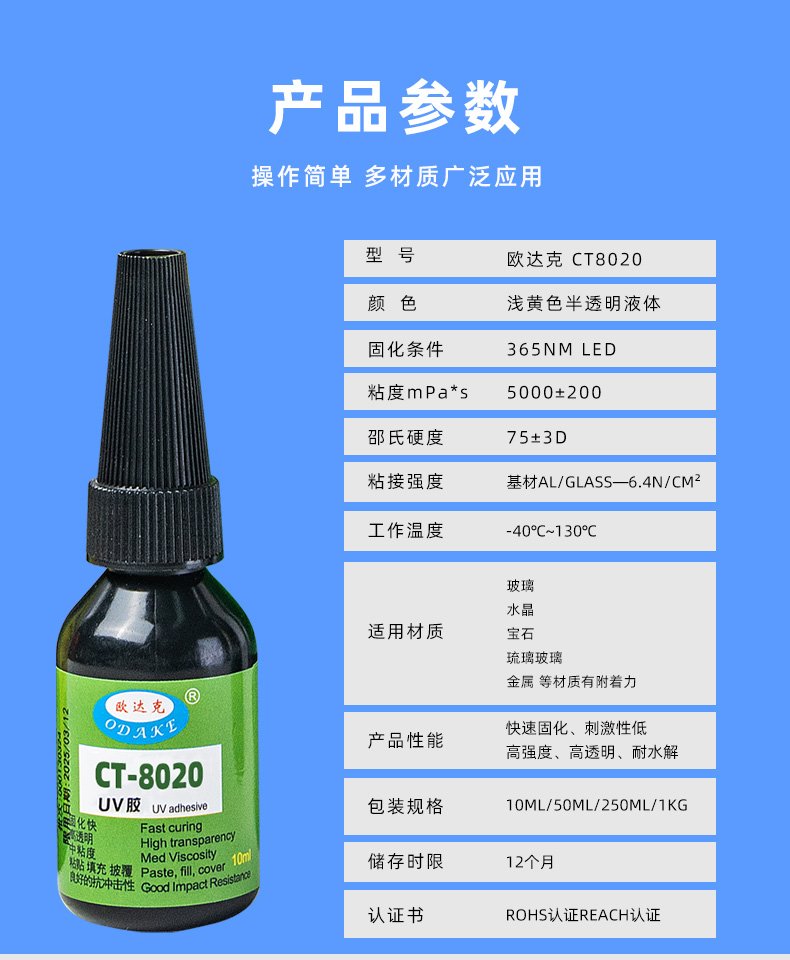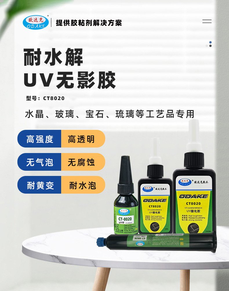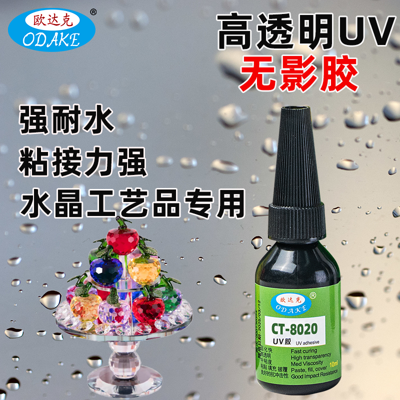 欧达克强耐水UV无影胶水玻璃水晶宝石高透明高强度紫外线光固化胶
